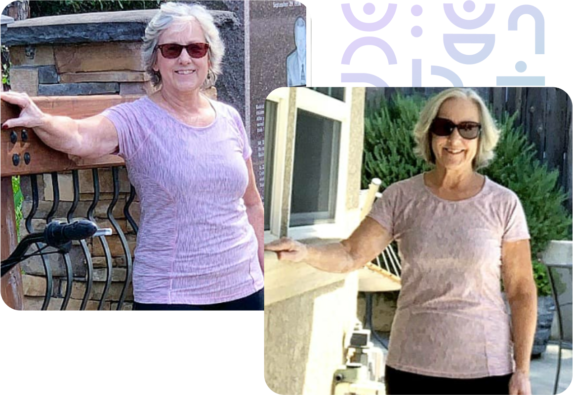 “Personal Training and Wellness by Katie gave me purpose and the motivation I was lacking for improving my muscle tone, weight loss, nutritional balance, and attitude about my overall health and appearance. At 67, I now feel more like 45! I feel great and admit my body is reflecting the younger, more vibrant me.”